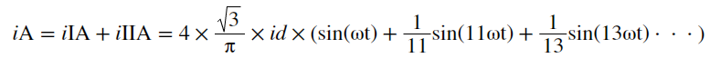 可見(jiàn),兩個(gè)整流橋產(chǎn)生的5、7、17、19、…次諧波相互抵消,注入電網(wǎng)的只有12k±1(k為正整數(shù))次諧波,且其有效值與與諧波次數(shù)成反比,而與基波有效值的比值為諧波次數(shù)的倒數(shù)。